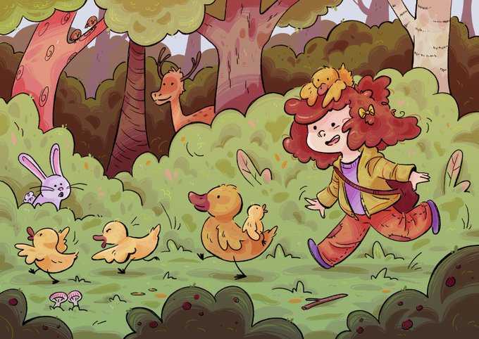 5 little ducks - finally finished this illustration. #kidlitart #nurseryrhymes #ArtistOnTwitter