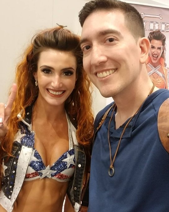 One of the highlights of theherocon was finally meeting @SantanaGarrett_ ! She made my day! Total sweetheart! ❤ . #herocon #theherocon #swflherocon #santanagarrett #wwe #nxt #aew #wwf #wow #wowwrestling #wrestling #prowrestling #comiccon #cosplay #joelxero