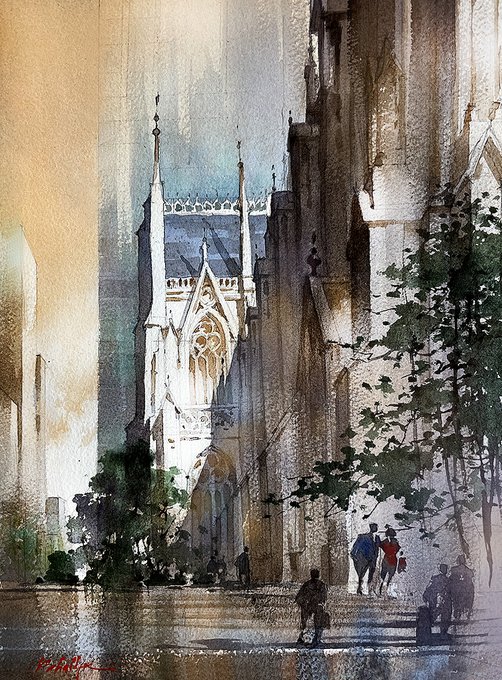 City of Contrast #nyc #manhattan #centralpark #watercolor #pleinair #painting #art #architecture #nature