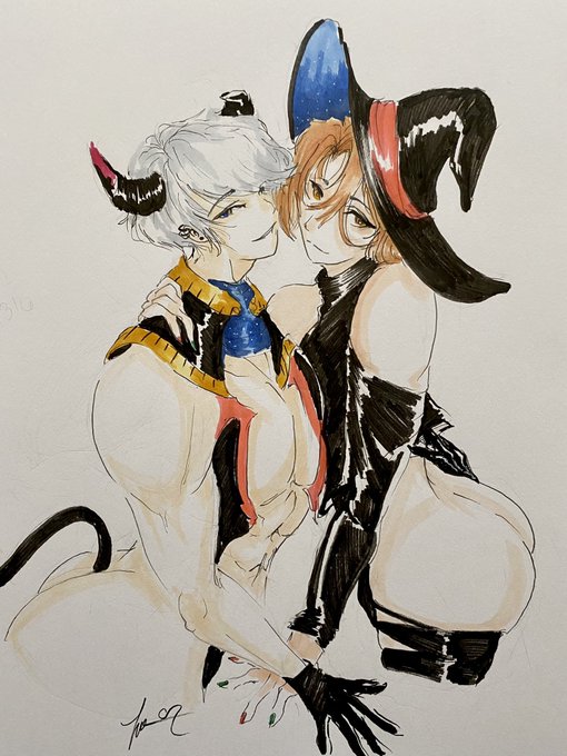 Costumes for Asmo and Solomon! Gotta keep drawing and fighting my sadness! . . #obeyme #obmプラス #obeymefanart #obeymeasmodeus #obeymesolomon #obeymensfw