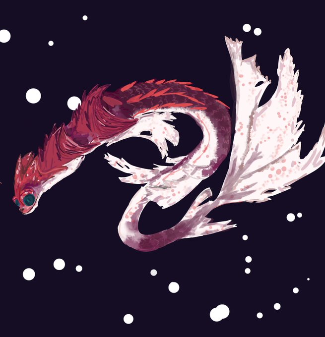 Mizugeki - Creature concept art. Took reference from frilled shark and turtle. It kind of turned out to be like a sea dragon/serpant i guess. #artontwitter #artwork #writer #fantasyart #conceptart #design #mythiart #creaturedesign #creature #animal #dragons #oceanlife #Snake