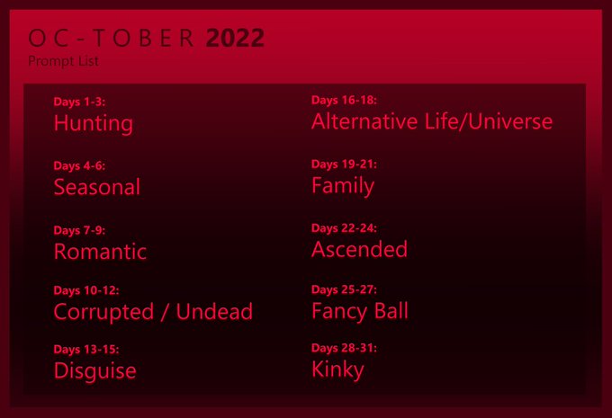My friends and I came up with a list of OC-tober prompts! #OCoctober #OCoctober2022 #Drawtober #Drawtober2022