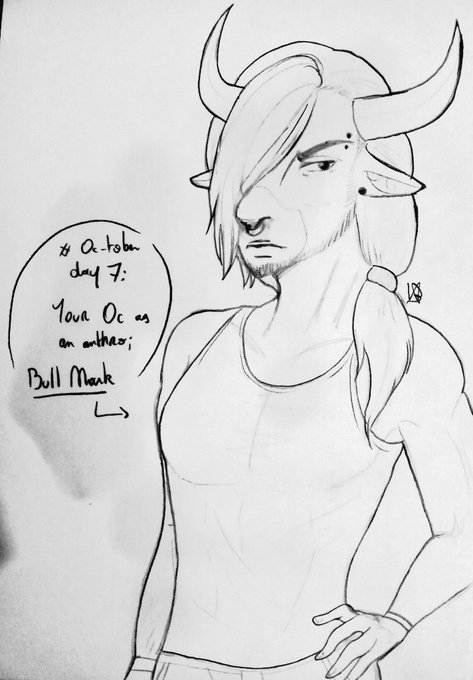 #inktober2021day7 #inktober #day2 #oc #ocprompts #bull #furry Your Oc as an anthro ; Mark as a Bull, his spiritual animal (and Taurus as his zodiac)