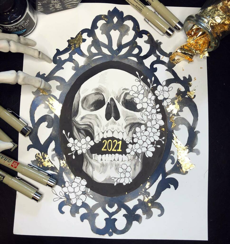 A little late in posting this, but that’s ok. Hopefully the ✨shiny✨ makes up for it Ink and gold leaf is one of my favorite combinations 🖤✨ . . . . . . . #art #artistsoninstagram #artistsofinstagram #halloween #drawloween #drawlloween #inktober #oct… instagr.am/p/CU26W8nrYFg/