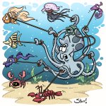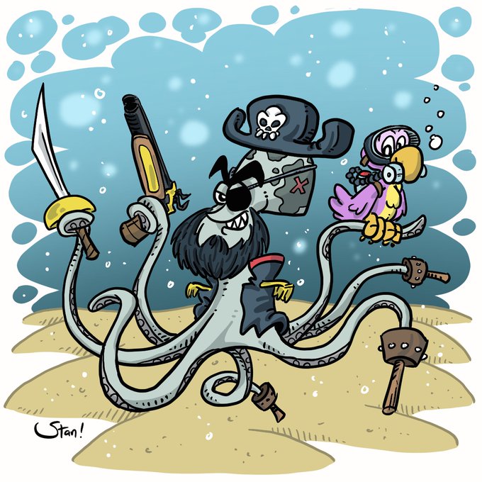 I don't have any pets ... but this is the perfect metaphor for the various projects on my desk, each tugging for my attention! #octobrrr #inktober #drawlloween #octopus #petsitting