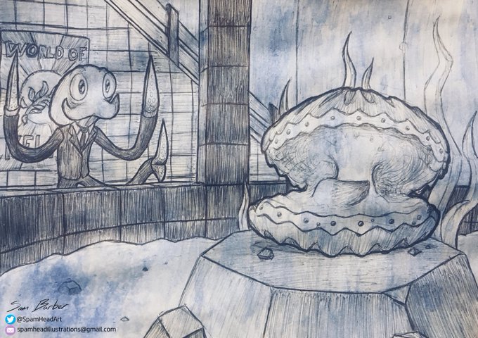 Inktober 2022 Day 4 - Scallop (Octodad) Real life callops are sodding terrifying-looking and I never knew this until today- #inktober #inktober2022 #octodad #traditionalart #inkart #Watercolour