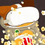 VRゴーグルで映画を観ると、そこはもうプライベート映画館、最高。これでポップコーンが不自由なく食べれればもっと最高。 #ネコキャット #猫と仕事と映画と #oculus #フリーランス #グラフィックデザイン #イラスト #illustration