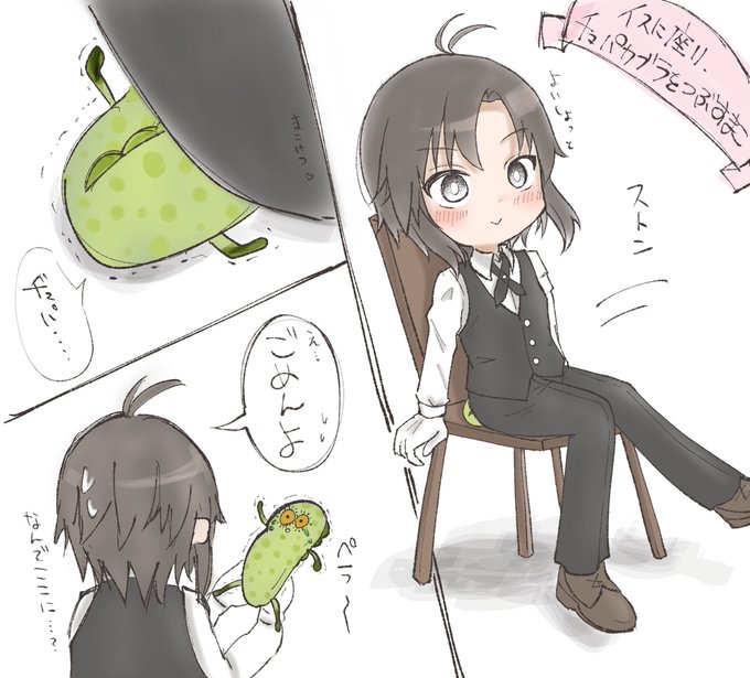 > 椅子にうつ伏せに寝ていたチュパカブラの上に気づかずに座ってペラペラに潰してしまっている執事姿の真さんをお願いします! #odaibako_64mi5 odaibako.net/detail/request… これで合ってる??wwww お題ありがとうございました(^o^)