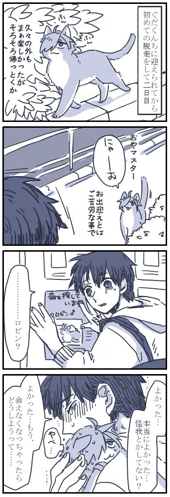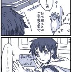 お題箱よりネコチャン漫画 > 出先で腹立つくらい嫌な事があって帰ってきたら耐えてた反動で涙止まらなくなっちゃったぐだくんに寄り添う… #odaibako_hook2_62 odaibako.net/detail/request… お待たせしました!みんなマスターの感情に敏感だと思うので…優しく寄り添ってくれそうです。
