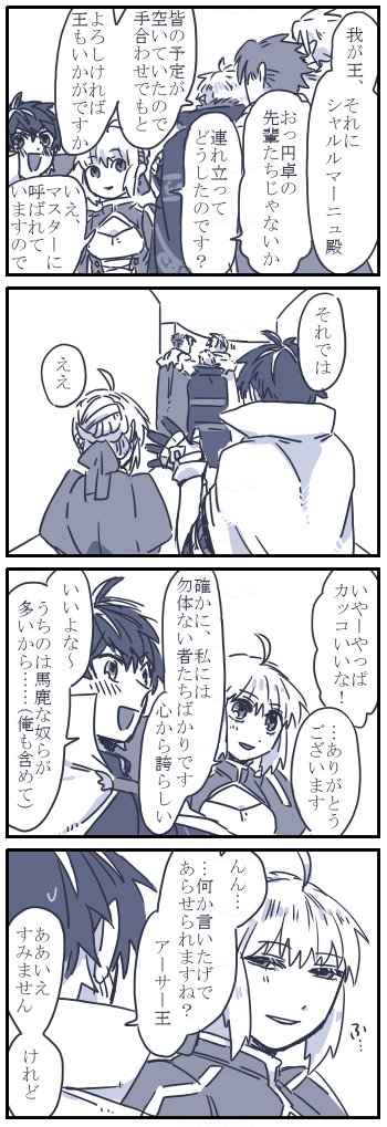 お題よりまにゅくんとアルトリアさん漫画 >…以前むつ様が描かれていたアルトリアさんとシャルル君が大食い対決していた漫画が大好きなので、またこの… #odaibako_hook2_62 odaibako.net/detail/request… もっと慣れてきたらガンガン部下自慢していってほしいですね…