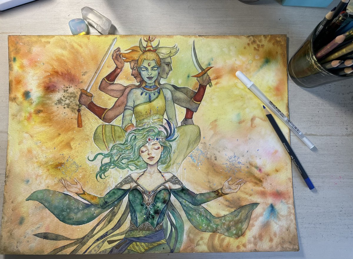多分お題箱設置してすぐの頃にお題箱にリクエスト頂いたリディアとアスラ。落書きじゃなくなってしまったので、今更完成😅… 私がかなり前にいった、プレリュードに関するどうでもいい呟きを覚えていてくださって嬉しい😆 #FF4 #odaibako_jurithedreamer Rydia watercolor from my request box 😁