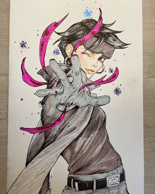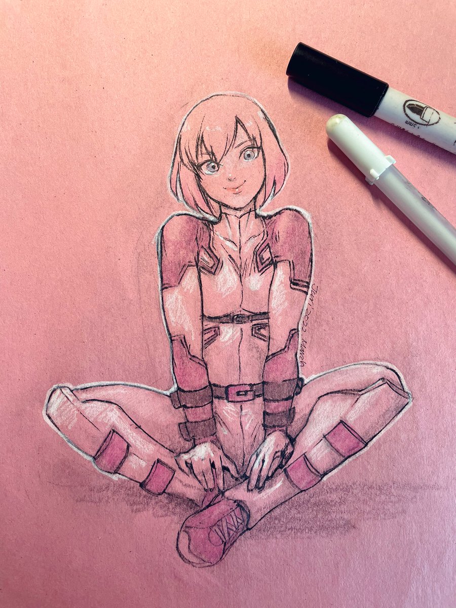 お題箱からグウェンプールちゃん落書き。グウェンプールちゃんは太腿が可愛いのに、太腿よく見えないポーズにしてしまった😞 #odaibako_jurithedreamer Gwenpool doodle from my request box😆💥