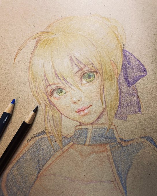 Color pencil doodle of Saber from my request box😉 #odaibako_jurithedreamer お題箱からFateのセイバーさん。鼻はもう少しデフォルメした方がよかったかも😓 #色鉛筆画
