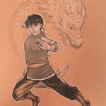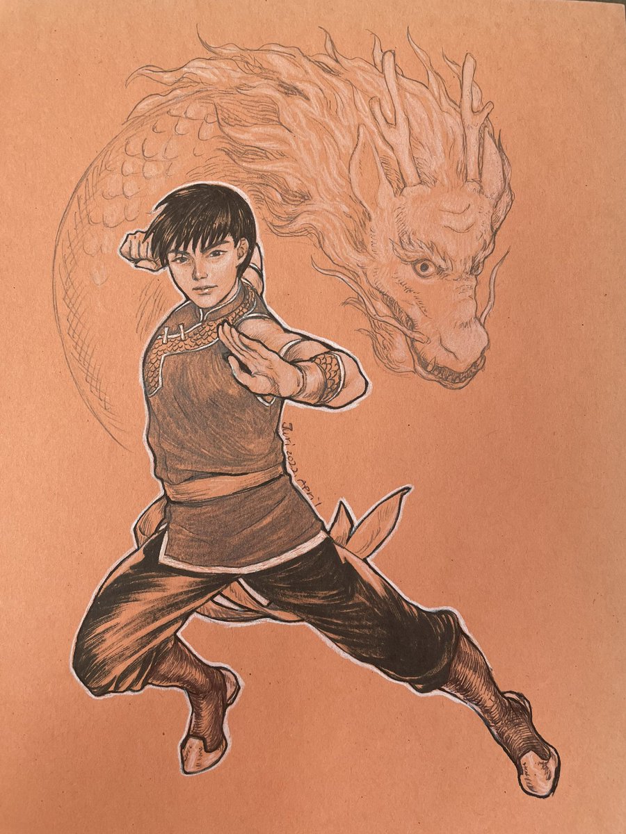 お題箱からシャンチーと龍。コミックス版です🐉体調悪いと落書きでも0→1の下書きみたいな作業が難しいけど、既に線画のあるのにインク入れるとかはそうでもないな、と思った😂ポーズはポーズマニアックスさんからです #odaibako_jurithedreamer sketch of Shang Chi from my request box