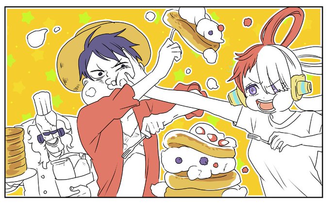 パンケーキとルウタ2連チャン! ウタジャケルフィさん好きすぎて何度でも描いちゃう > 「好物であるホイップましましのパンケーキをルフィと一緒に食べるウタ」 を描いて欲しいです。よろしくお願いします。 #odaibako_midoromol odaibako.net/detail/request…