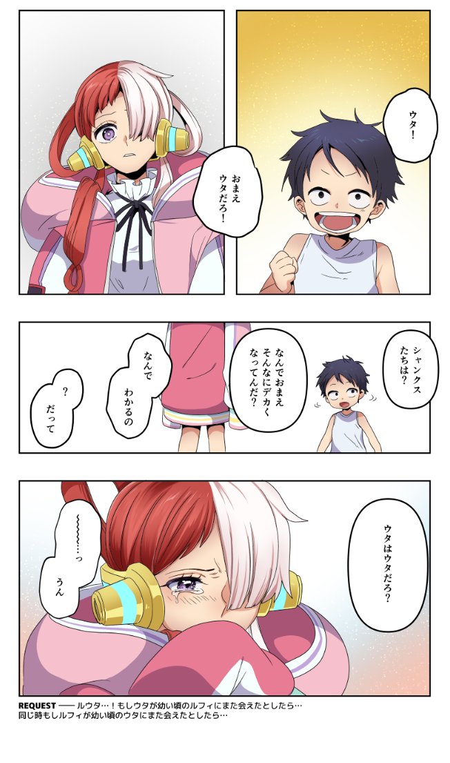 if邂逅/もう一つの方はまた後日!> お題:ルウタ…!もしウタが幼い頃のルフィにまた会えたとしたら…同じ時もしルフィが幼い頃のウタにまた会えたとしたら… #odaibako_midoromol odaibako.net/detail/request…