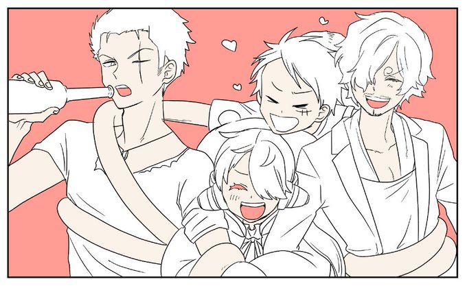 > ゾロとサンジに抱きつくルウタをお願いします #odaibako_midoromol odaibako.net/detail/request… クルー大好きな船長だいすきなのでこんなかんじになった!!ウタちゃん心ひらくの何かとっかかりを乗り越えるなら同い年ってことでわいわいしても嬉しい…