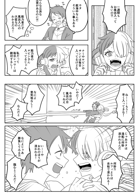 > お時間があれば「ルフィが1週間に1回しかお風呂に入らないことを聞いて、その不潔さに驚愕した勢いで何故か一緒にお風呂に入っ… #odaibako_midoromol odaibako.net/detail/request… 一緒にお風呂なルウタです!!お題ありがとうございました!本にするときとかにガッツリ加筆修正したい