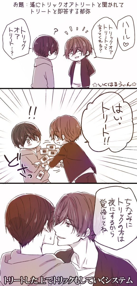 >遙にトリックオアトリートと聞かれてトリートと即答する郁弥が見たいです #odaibako_yuzuru_ru_ru odaibako.net/detail/request… お題ありがとうございました!