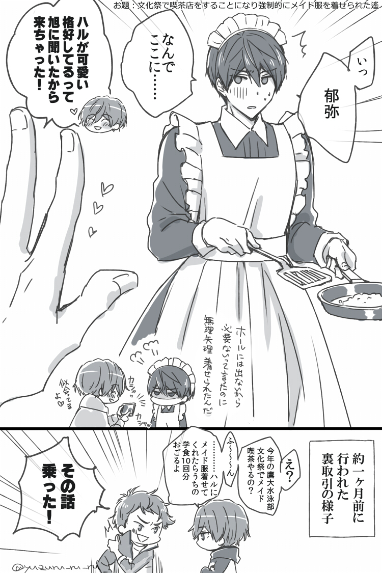 > 文化祭で喫茶店をすることになり強制的にメイド服を着せられたハルちゃん見たいです!! #odaibako_yuzuru_ru_ru odaibako.net/detail/request…… 遅くなってすみません!描きました! 郁弥「クラシカルメイドなんて、旭わかってるじゃん。見直したよ。」