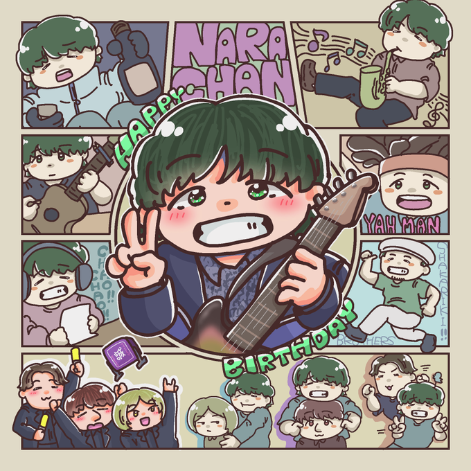 楢ちゃんお誕生日おめでとう🥳🍻🎉👏ベースを抱えてシンベを弾く楢ちゃんの姿が大好きで…この良さ伝われ~!!!!と思い描きました🥹🫰ベース曲と噂の新曲も楽しみです💚34歳が楢ちゃんにとって素敵で健やかで最高な1年でありますように✨ #Official髭男dism #楢﨑誠誕生祭2023 #ならちゃん誕生祭2023
