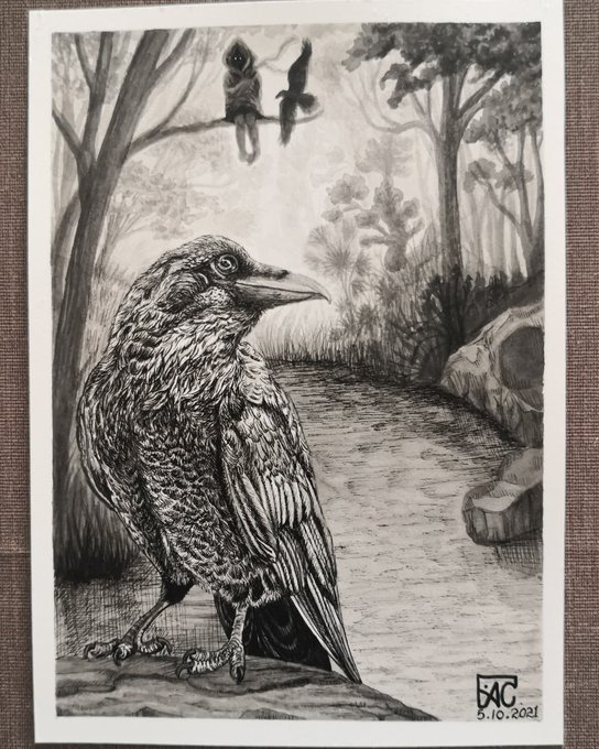 Day 5/31 "Raven". I'm not going to participating in all 31 days, but I'll be popping in every once in a while with something from the #officialpromptlist and a few other lists🤗 @inktober #inktober #inktober2021 @artistofmalaysia