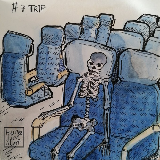 Day 7: TRIP @inktober #inktober #inktober2022 #inktober22 #officialpromptlist #trip #skeleton #train #ink #challange #art #drawing #watercolor #blue