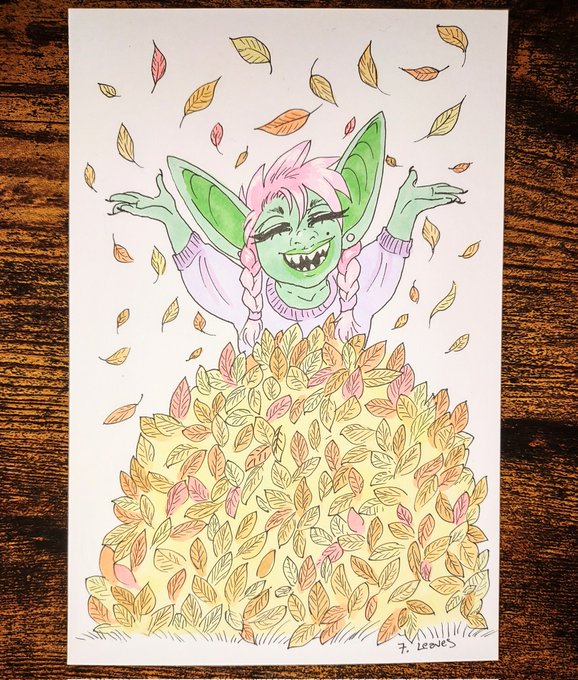 Gobtober Day 7: Leaves Love hopping into a giant pile of leaves. Nothing quite like it. #gobtober #inktober #ohuhubrushmarkers