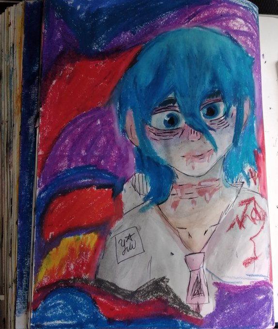 脳内解放らくがきタイム。 1時間で何枚かけるかなキャンペーン。 ちょっとオーバーして1時間10分で3枚。 ダイソーのオイルパステルで古新聞にらくがき。 究極の節約アートだ!? #doodle #oilpastel #oilpasteldrawing #ダイソー #オイルパステル #古新聞