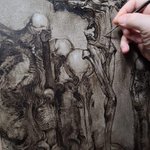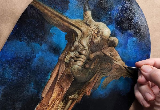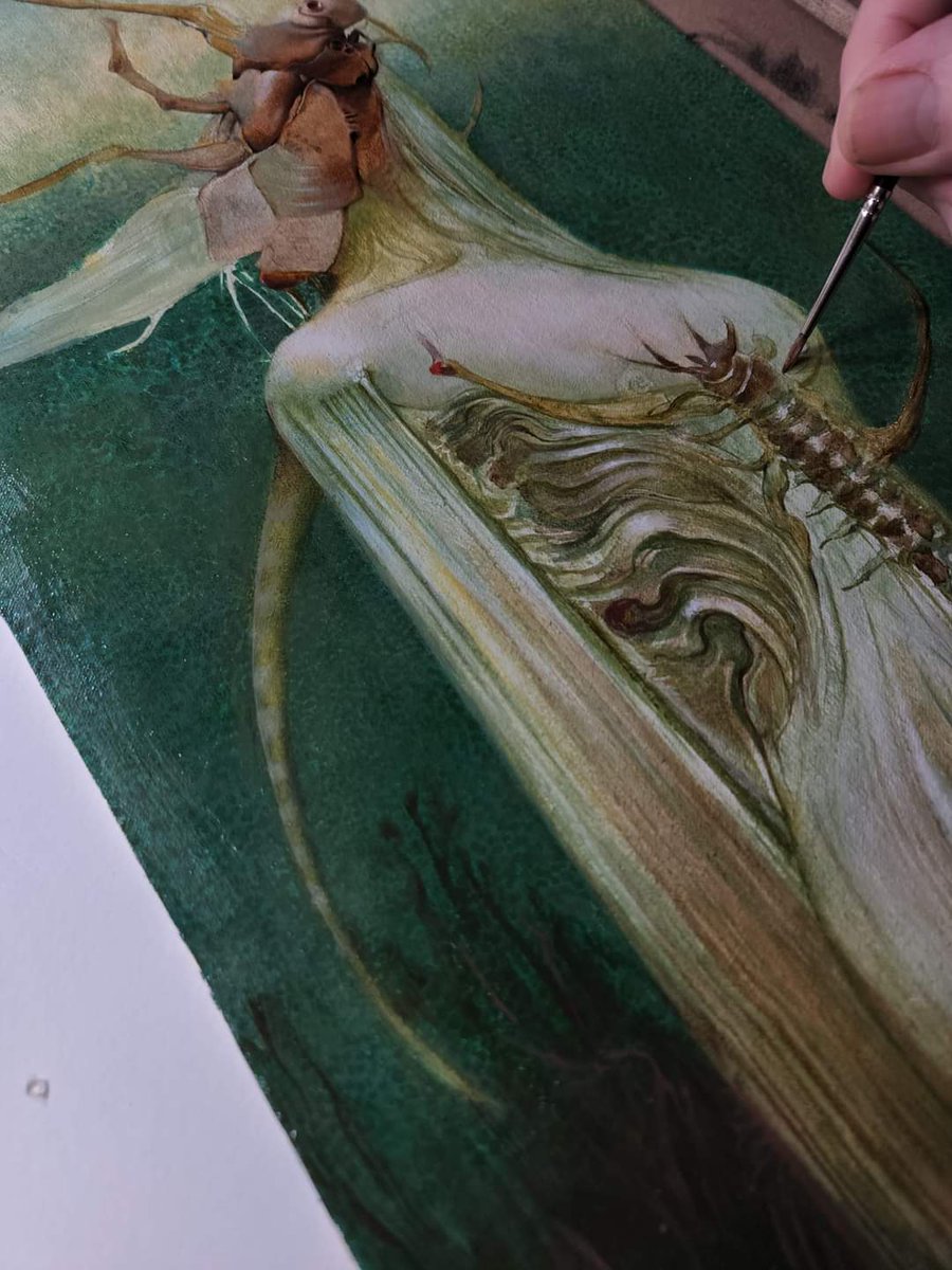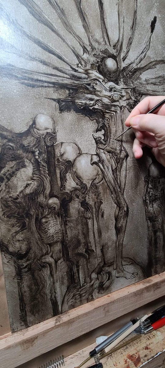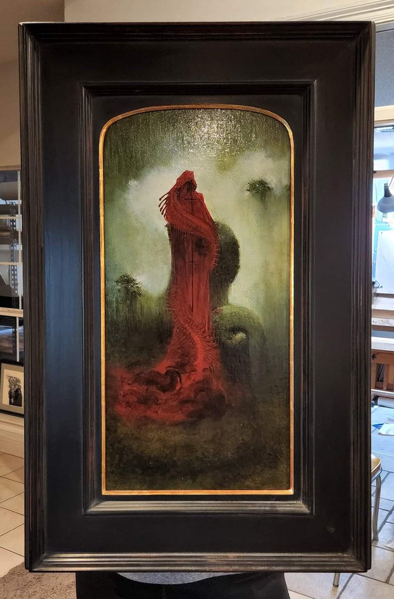Next up Oil on linen on board with @trekell_art art brushes. We will be at @MONSTERPALOOZA1 June 3-5, stop by booth 404 and say hello or you can catch us at @CoproGallery June 4th for the opening of my show, Sinew and Bone. #oilpainting #oils #darkart #trekellartsupplies #art