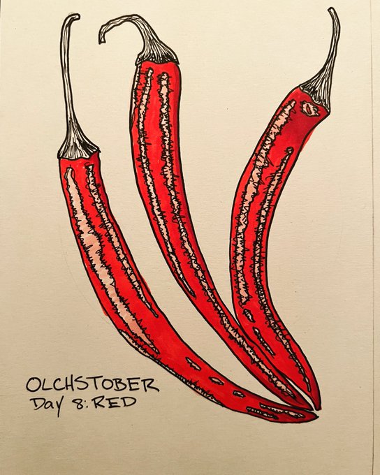 OLCHSTOBER prompt today was “Red,” so I had to toss some color on the piece. #olchstober #inktober