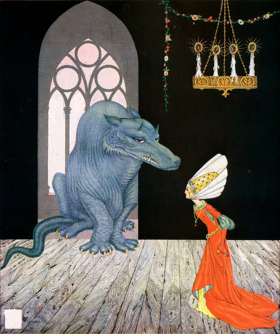 illustration from an old edition of "Beauty and the Beast" by Felix de Gray, 1926 #beautyandthebeast #illustration #oldillustration #childrensbooks #artnouveau