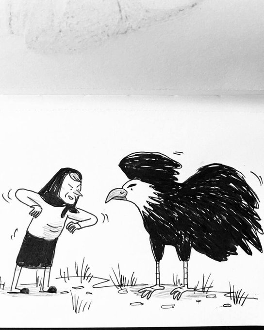 A standoff with an #eagle for 11th day of #inktober 🦅 #inktober2022 @inktober #drawing #ink #sketch #sketchbook #art #artwork #illustration #doodle #oldlady