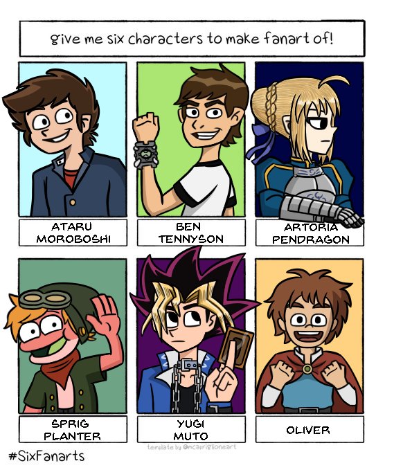 Here it is, I had fun with this. I might do this again in the near future. #SixFanarts #SixFanartsChallenge #yugioh #artoriapendragon #TYPEMOON #Saber #SprigPlantar #Ben10 #Oliver #NiNoKuni #AtaruMoroboshi #UruseiYatsura