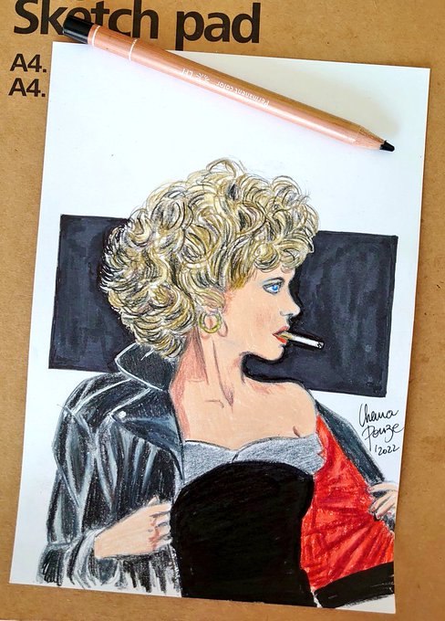 #OliviaNewtonJohn by #Grease #オリビア・ニュートン・ジョン 映画「グリース」より 子供の頃、母に連れられて観に行った。字幕だし、内容理解出来てたのか😅ただ、最後のオリビアのシーン格好よかった。 歌も名曲。ご冥福をお祈りします。 #絵 #イラスト #鉛筆画 #drawing #Pencildrawing