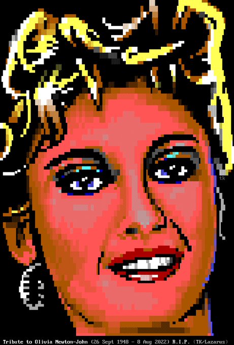 RIP —- ANSI by The Knight // Lazarus (2022) —- Released at Nova 2022 —- #ansiart #ansi #ascii #asciiart #pixelart #textmode #textart #text #art #demoscene #bbs #retrocomputing #retrographics #8bit #8bitart #typography #graffiti #graffitiart #olivianewtonjohn