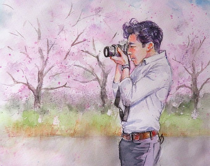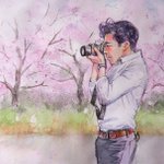こんなカメラマンチェンさんに遭遇したらどうしよう😇💓 日本の桜🌸沢山撮って帰ってネイ❣️ で、お写真🆙お待ちしてます! #SOI東京 楽しんで〜❣️❣️ Credit:@PanasonicBrandさんの有難い動画より🙏 #nathanchen らしきもの #OlympicChampion #watercolor #fanart