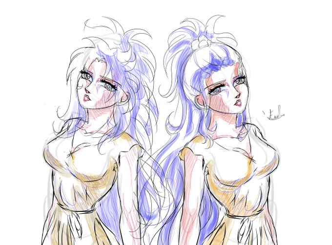hace demasiado tiempo no usaba #mediBang estaba ensayando de nuevo y practique un poco con ambas hermanas #geminis y deduci alguno de su cabello sin recoger #saintSeiya #geminis #integra #paradox #saintSeiyaomega #omega