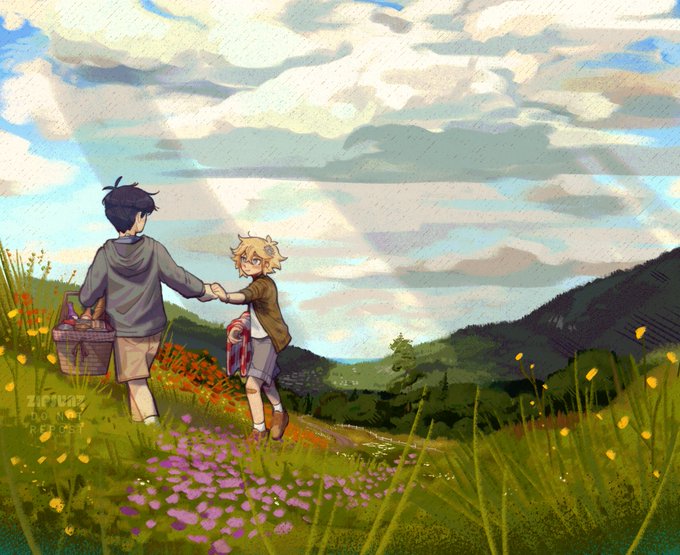 #OMORIFANART #omorisunflower не знала стоит ли сюда это постить потому что на русский мне лень переводить энивей! Omori(!) and Basil 17 y.o. AU