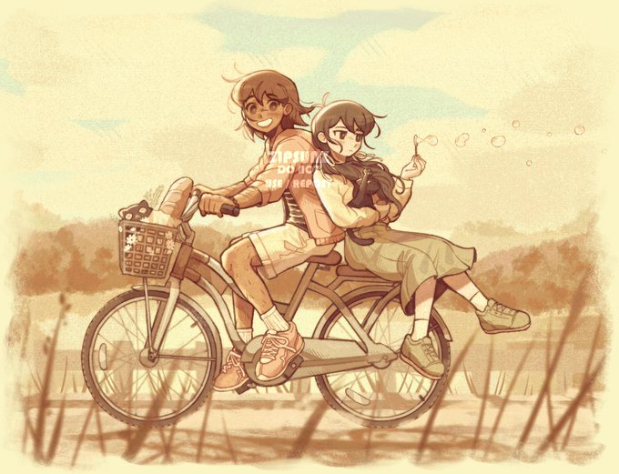 a redraw of omocat's bike ride 🫧 happy birthday @duckietine !! [ #omori, #omorifanart, #omorisunkel ]