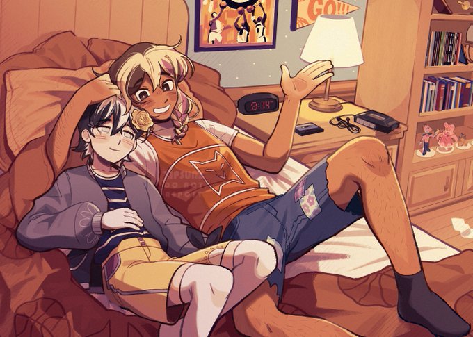 caught you with your guard down 🌃 happy birthday to @shrimperini !! [ #omorifanart, #omorisunkel, #emoriAU ]
