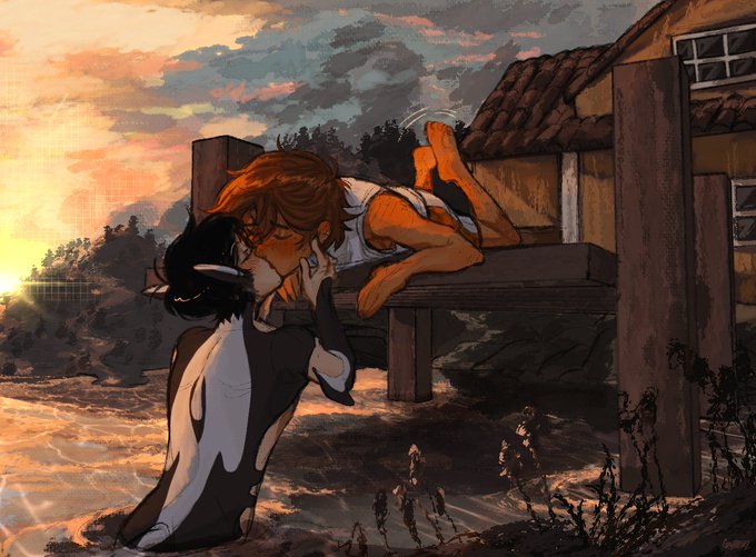 calm after the storm 🌅 for my art trade with @otomerson !! [ #omorifanart, #omorisunkel, #omoriendlessAU ]
