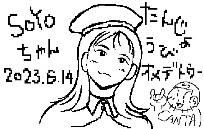 SOYOちゃんお誕生日おめでとう!! 先日のリリイベで私の描いたイラスト見ているって聞いて嬉しかったです! TIFのパフォーマンス、期待しています! #onefive_SOYO生誕祭2023 #onefive_SOYO #吉田爽葉香