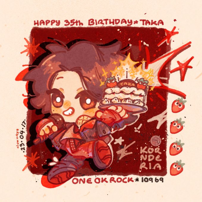 Happy Birthday, Taka 🎂🍰❤️ luxury disease is my favorite album so far, so I tried to match the colors and layouts of the drawing to it. the cake and strawberries are from his IG, I like them so much lol #ONEOKROCK #oneokrockfanart #kdr_fa