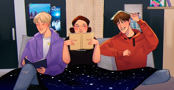 hyungu bringing all the books he read at military back to the studio📚💜 @official_ONEWE #ONEWE #ONEWEfanart #원위 #현구 #일러스트 #illustration