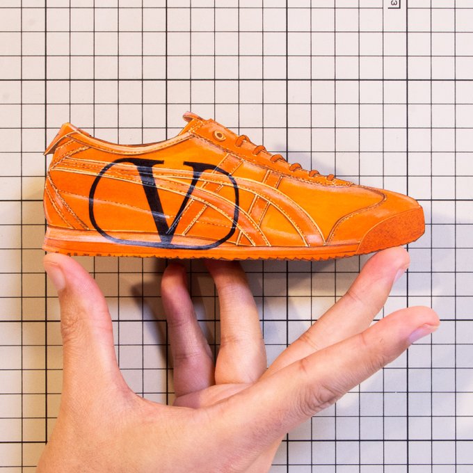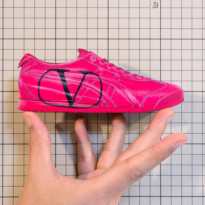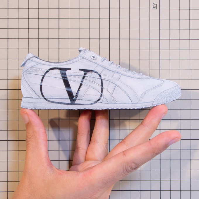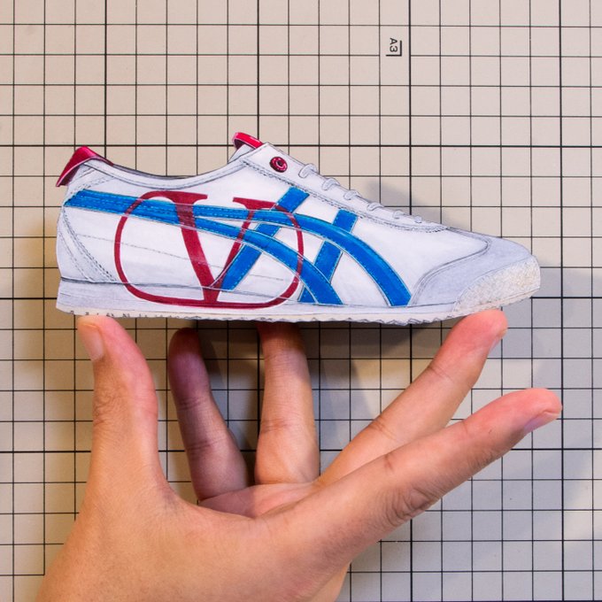 【今日の靴】01489足目 “VALENTINO × Onitsuka Tiger” MEXICO 66 SD(FW2020) #Valentino #onitsukatiger #OnitsukaTigerXValentinoGaravani #ValentinoFW20 #PierpaoloPiccioli #Sneakers #illustration #copic #copicmarkers #切り絵 #イラスト #スニーカー #コピック