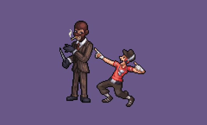Yesterday's daily, a Spy and a Scout from Team Fortress for the theme #opposites! Process video in the thread! #PixelArt #ドット絵 @PyxelEdit #artistsontwitter @Pixel_Dailies #Fanart
