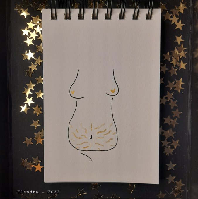 Nous sommes fortes, nous sommes belles, nous sommes fières. * * * * * #Inktober #inktober2022 #inktoberday18 #scrape #cicatrice #vergeture #bodypositive #gold #or #aquarelle #aquarelledorée #drawtober #artistoninstagram #ink #traditionalart #sketch #sketchbook