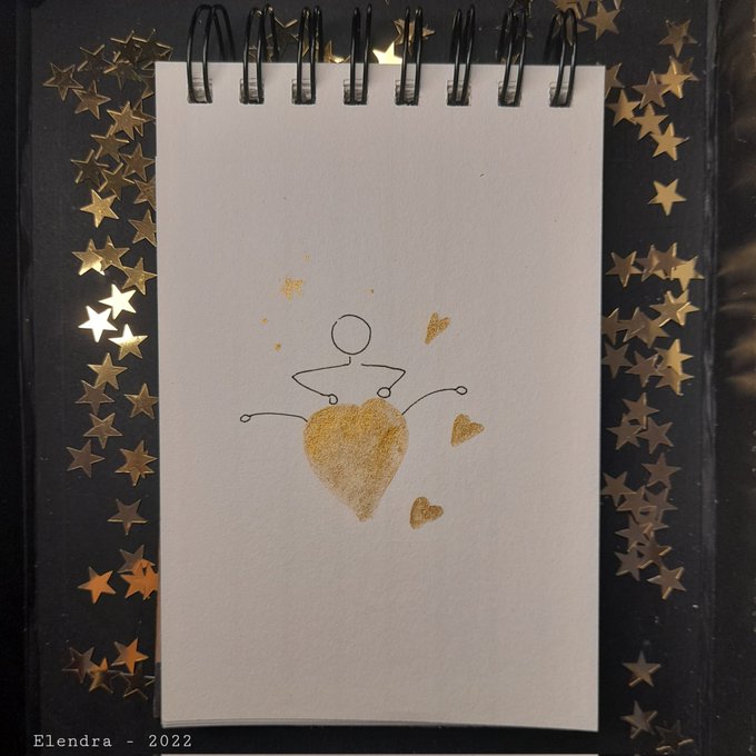 En ce moment c'est pas facile mais courage, on va tous y arriver 🤍 * * * * * #Inktober #inktober2022 #inktoberday26 #ego #lovebook #book #gold #or #aquarelle #aquarelledorée #drawtober #artistoninstagram #ink #traditionalart #sketch #sketchbook