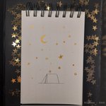 Une petite pause sous les étoiles ✨ 🏕 * * * * * #Inktober #inktober2022 #inktoberday28 #camping #àlabelleétoile #cielétoilé #gold #or #aquarelle #aquarelledorée #drawtober #artistoninstagram #ink #traditionalart #sketch #sketchbook